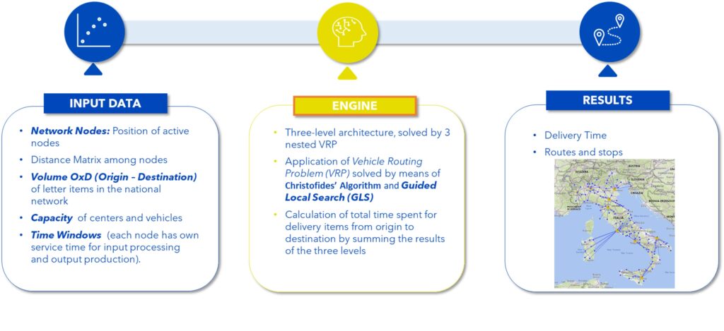 Table 1. Three-layer architecture for multi-depot VRP where each first mile sorting centres collects items to send in Italy